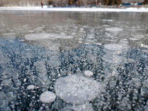 雪が積もっていないエリアでは、少ないですがアイスバブルもまだ見られそうです。